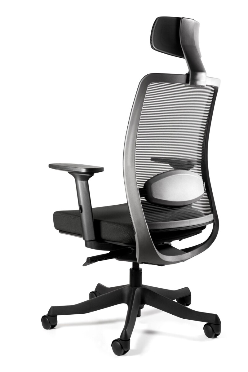 – Zagłówek i oparcie tapicerowane siatką, konstrukcja w kolorze charcoal