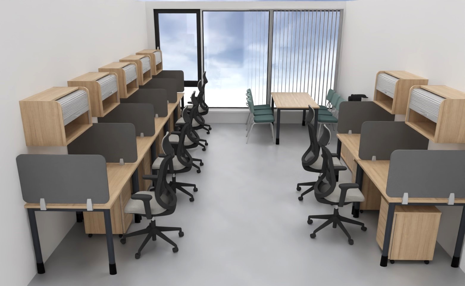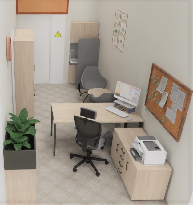 Wybór i aranżacja mebli: Wspólnie wybierzemy funkcjonalne i estetyczne meble, w tym ergonomiczne stanowiska pracy, komfortowe sofy i stoły konferencyjne.