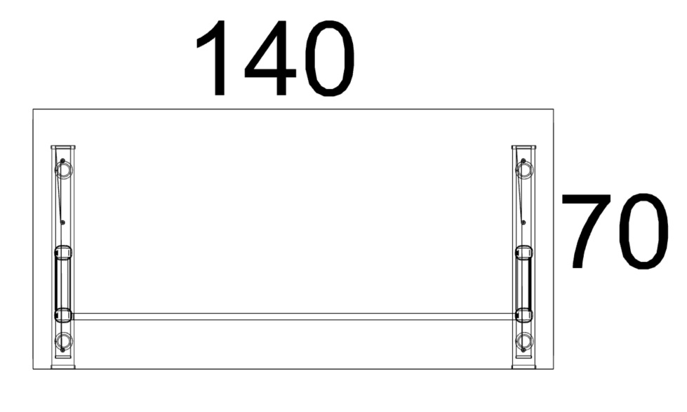 Stelaż metalowy w całości lakierowany proszkowo. Noga wykonana z profilu zamkniętego o przekroju prostokątnym 60×20 mm. i zakończona stopką o zakresie regulacji 0-20 mm.