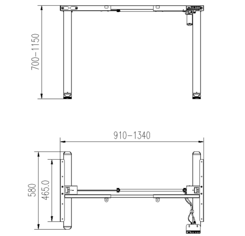 Nowoczesny stelaż do biurka elektrycznie regulowanego.