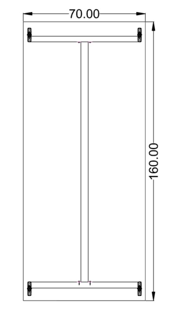 Stelaż metalowy w całości lakierowany proszkowo. Noga wykonana z profilu zamkniętego o przekroju prostokątnym 60×20 mm. i zakończona stopką o zakresie regulacji 0-20 mm.