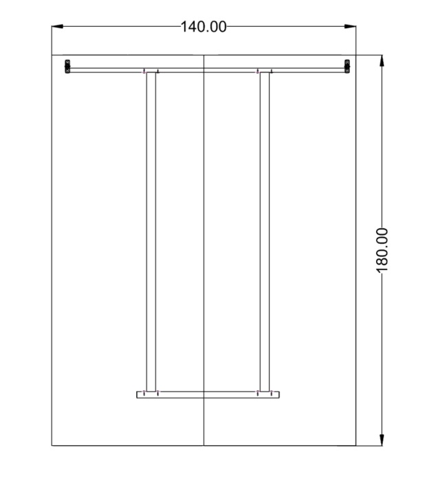 Stelaż metalowy w całości lakierowany proszkowo. Noga wykonana z profilu zamkniętego o przekroju prostokątnym 60×20 mm. i zakończona stopką o zakresie regulacji 0-20 mm.