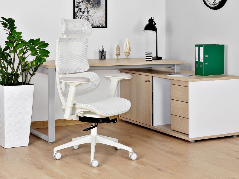 Zagłówek, oparcie oraz siedzisko zostały tapicerowane wytrzymałą siatką, która zapewnia dobrą cyrkulację powietrza i komfort nawet podczas intensywnej pracy.