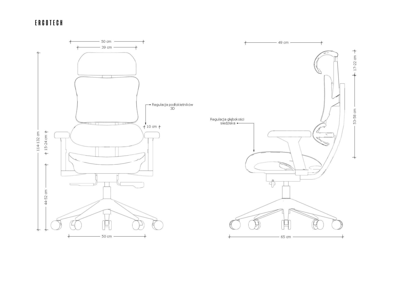 Fotel pozwala regulować wysokość oraz głębokość siedziska, a także wysokość oparcia i zagłówka, co umożliwia idealne dopasowanie do wzrostu użytkownika.