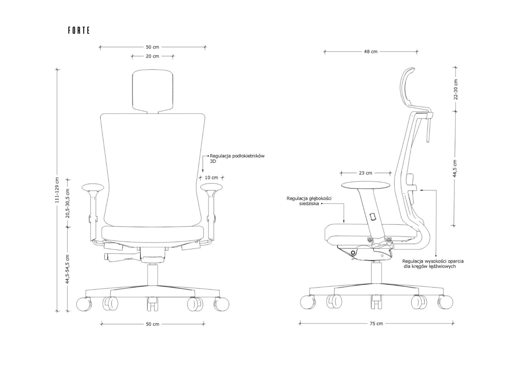 – Regulacja podłokietników 3D