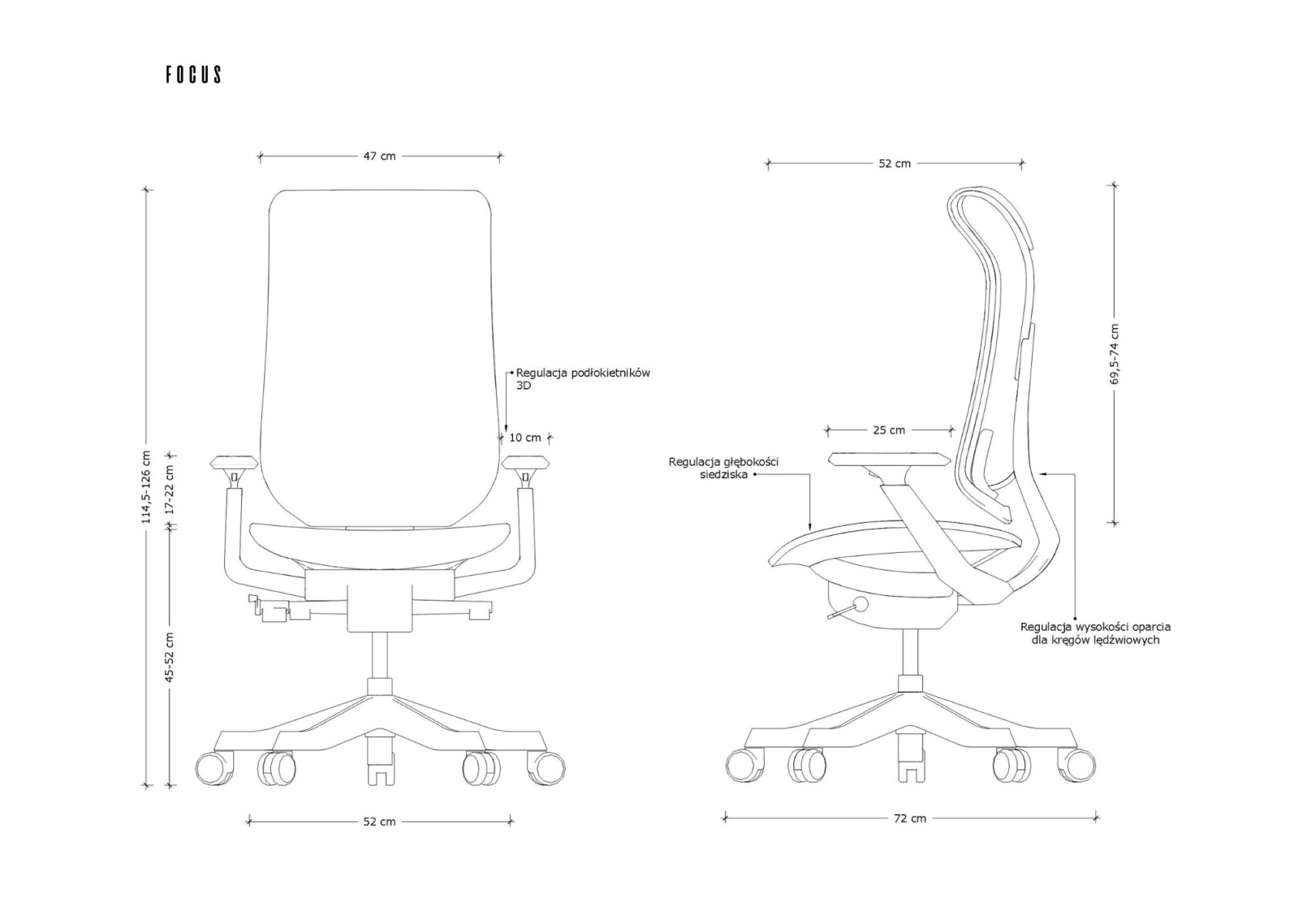 Fotel ergonomiczny do biura FOCUS to wygodny model obrotowy z wysokim oparciem i regulacją.