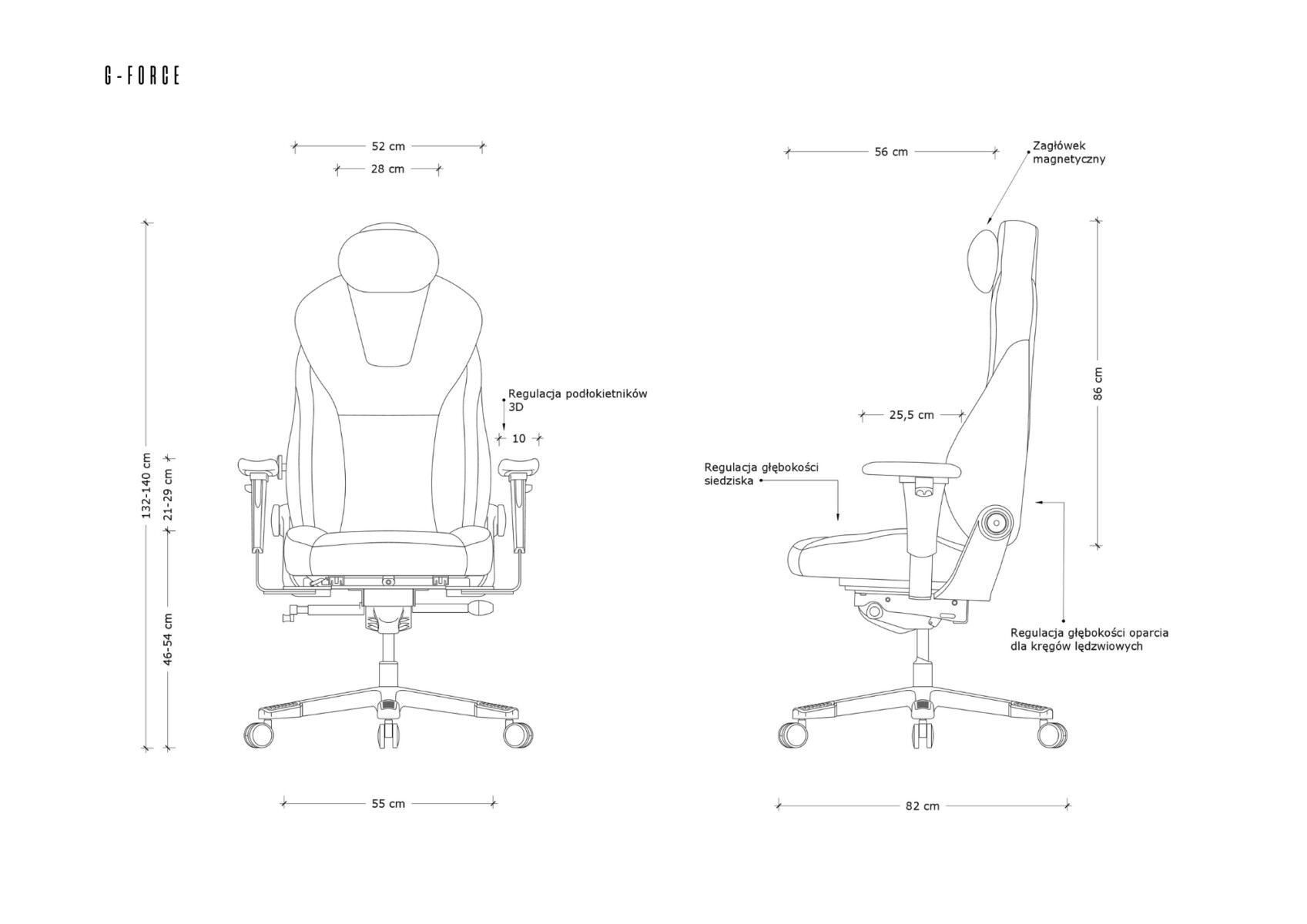 Ergonomia i pełna regulacja fotela G-FORCE