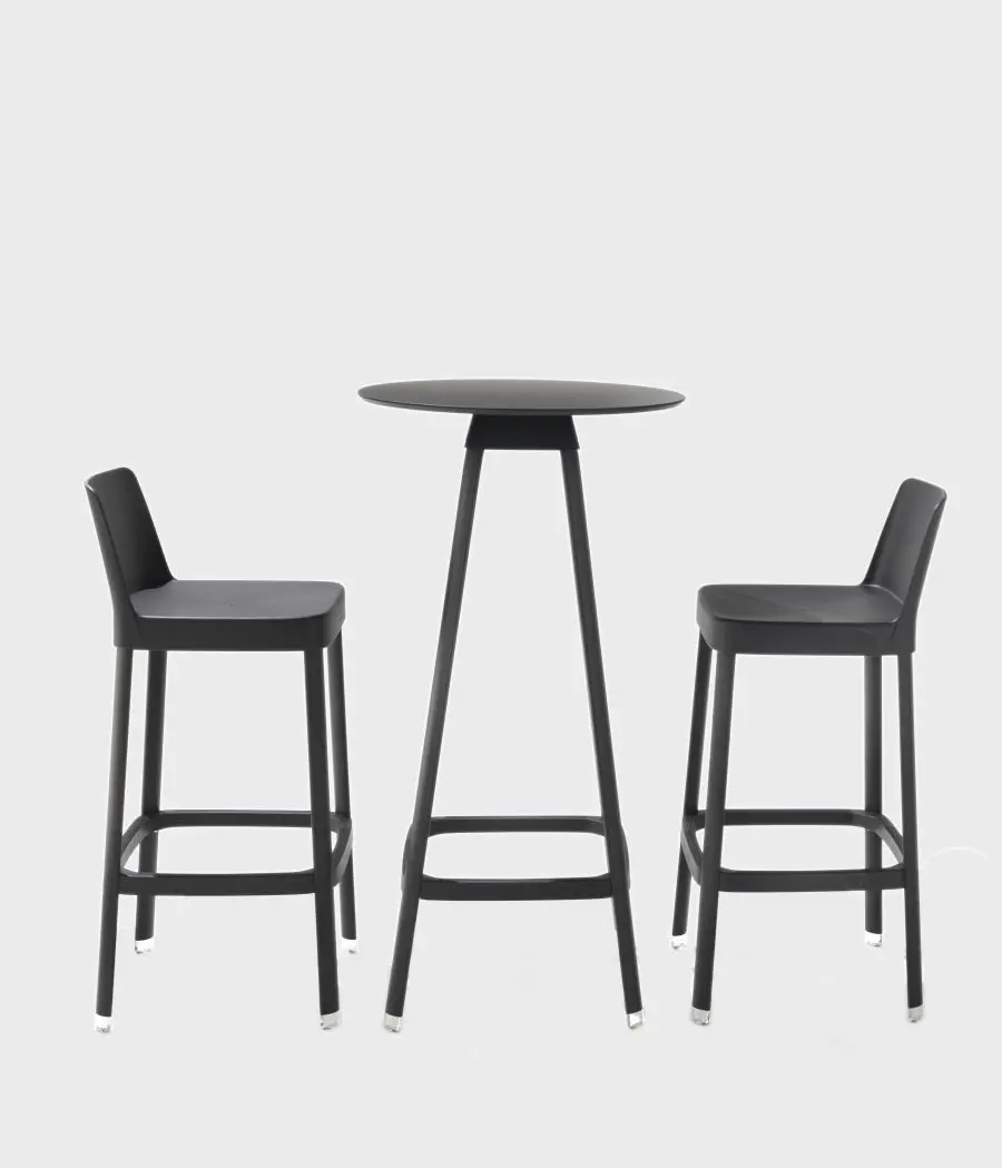 Ciekawą cechą TAPAS jest kolor „korten” czyli rdzawy, stosowany w stelażach zarówno stolików jak i hokerów. W połączeniu z podobnym kolorem w krzesłach NEXO czy TARES uzyskujemy bardzo nietypowe rozwiązania kolorystyczne w stylu „loftowym.