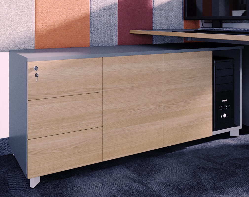 Szafki podporowe zapewniają szybki dostęp do potrzebnych dokumentów. Połączenie biurka z szafką podporową lub kontenerem to doskonale rozwiązanie pod względem wizualnym jak i ergonomicznym.