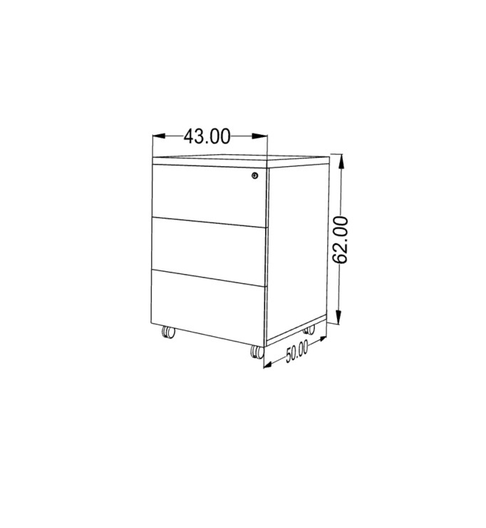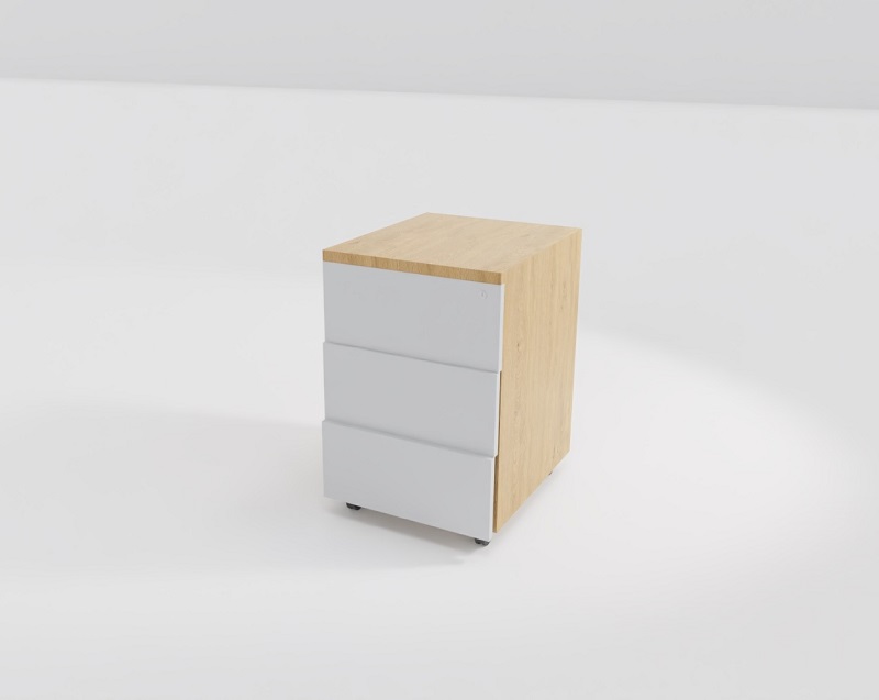 Kontener z gładkim frontem bez uchwytów – schowana aluminiowa listwa po obu stronach umożliwia otwieranie szuflad.