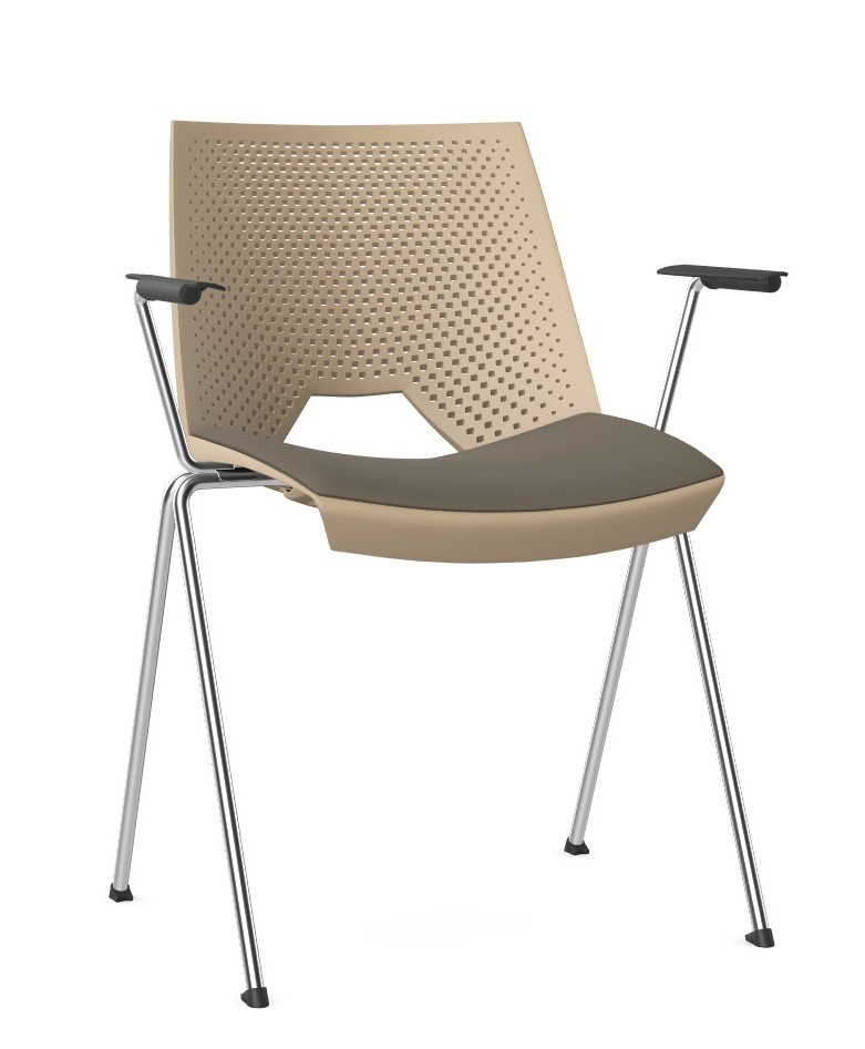 W wersji stelaża 4-nóżki istnieje możliwość montażu podłokietników, oraz pulpitu, prawego lub lewego. Nakładka podłokietnika obraca się w taki sposób aby umożliwić sztaplowanie.