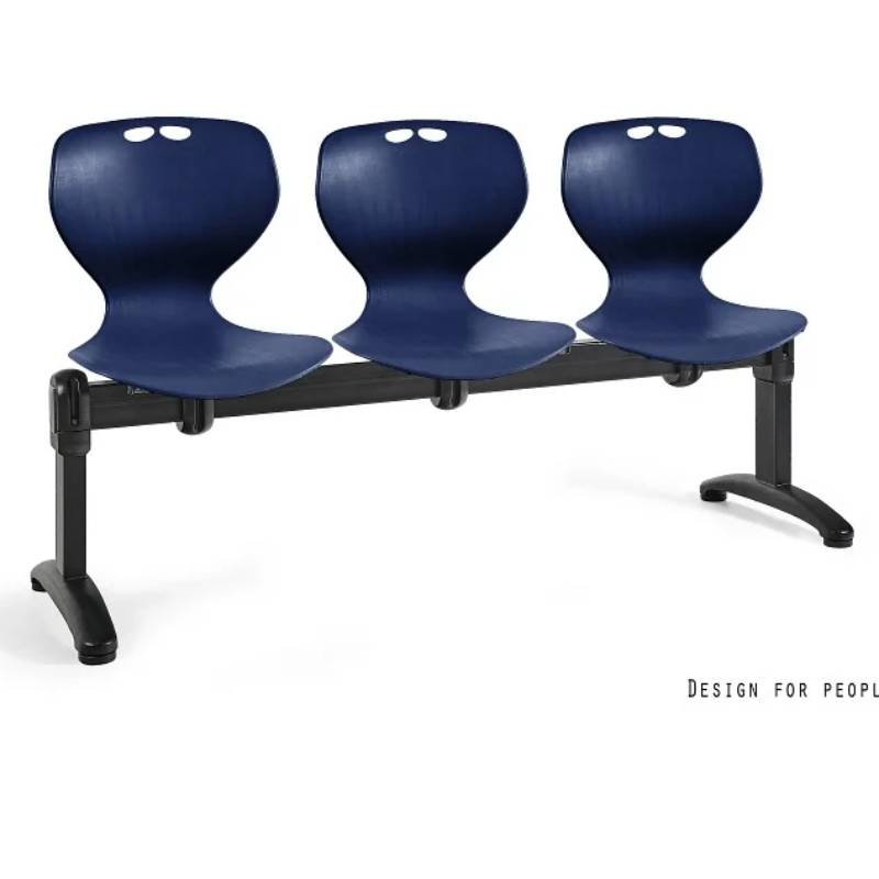 Siedziska z łatwoczyszczącego tworzywa sztucznego są zamontowane na wspólnej belce, co zapewnia stabilność i zapobiega przypadkowemu przemieszczaniu się mebla.
