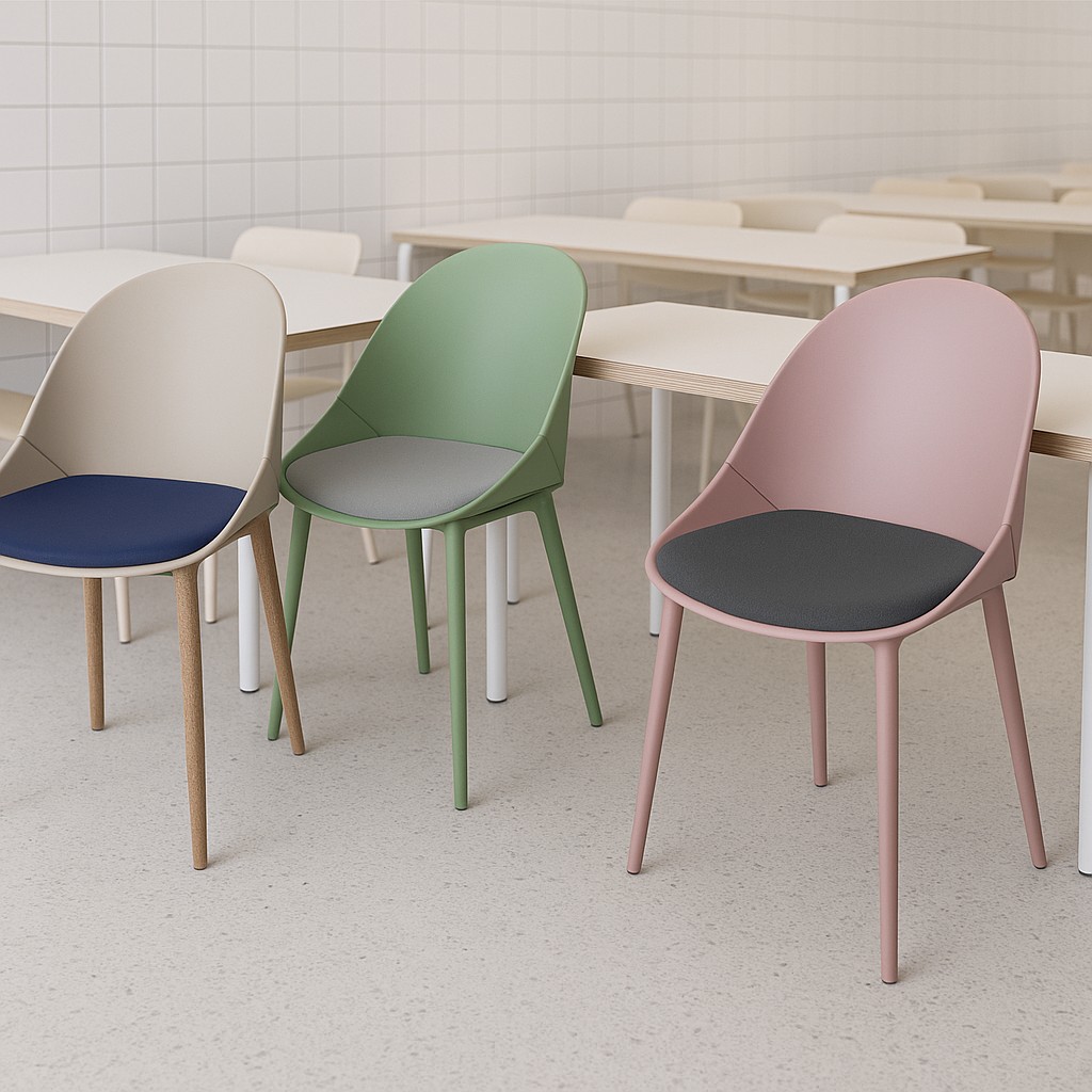 Wiele rodzajów stelaży oraz kilka kolorów kubełka umożliwiają szerszy zakres aranżacji oraz pozwalają na dopasowanie krzesła do danego miejsca.