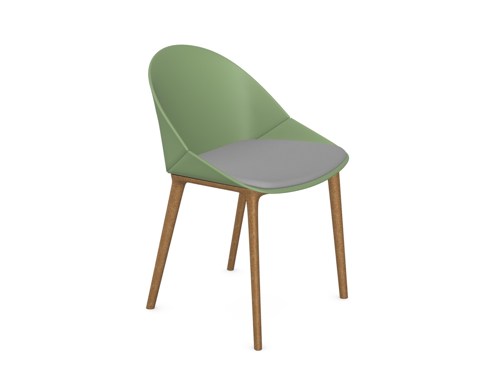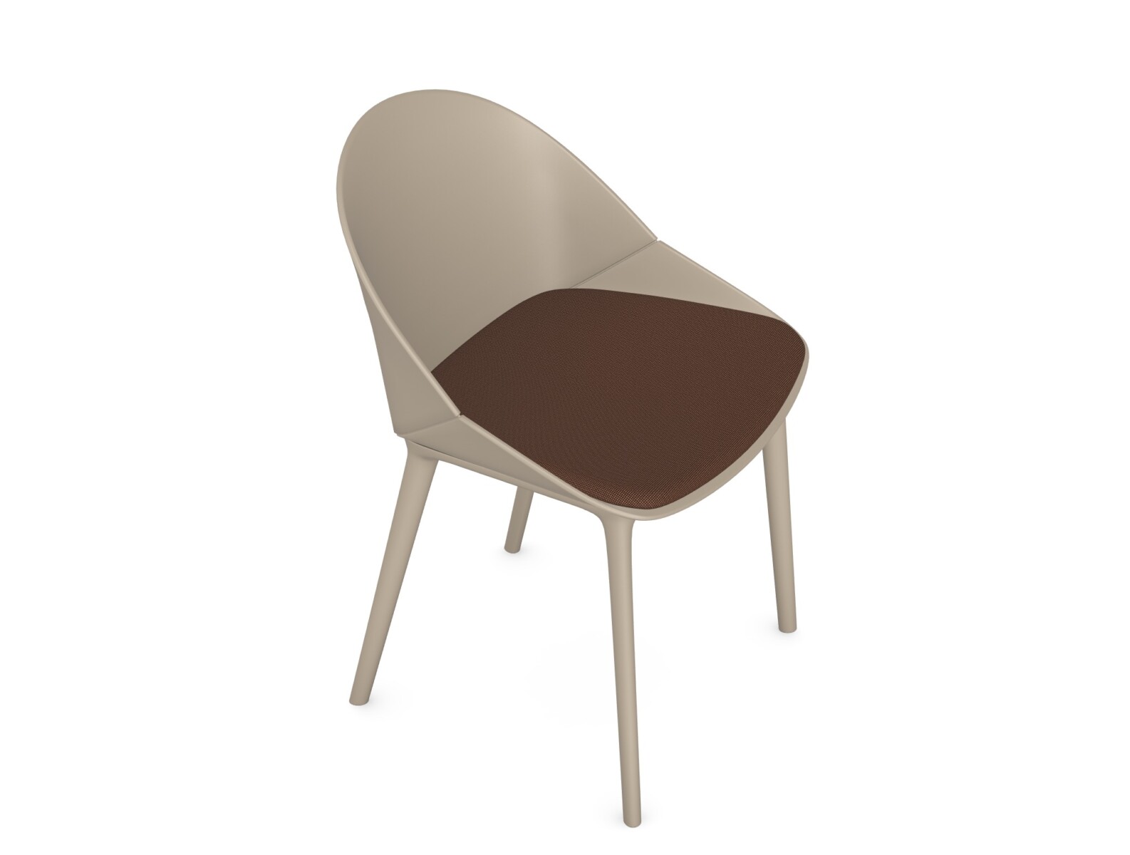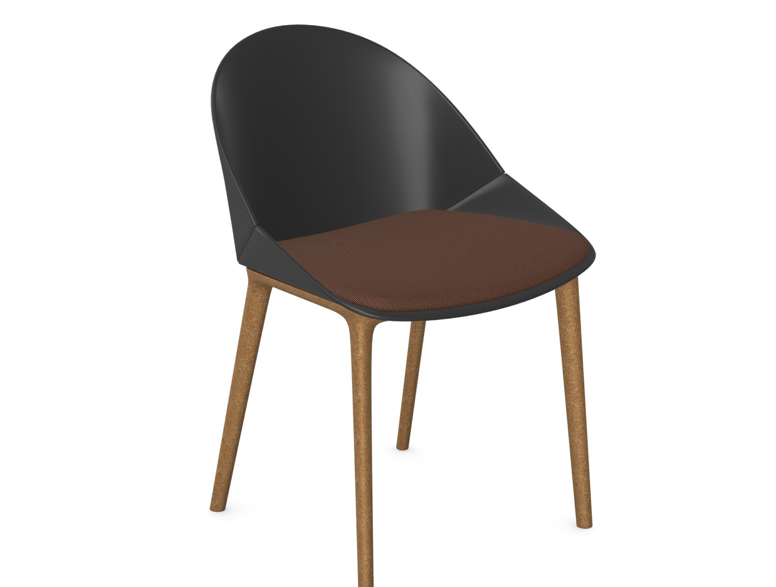 PAPILLON posiada 3 dedykowane stelaże: 4 nóżki z tworzywa, 4 nóżki drewniane, stelaż prętowy. Może być również wykonane w wersji z podstawą 4-ramienną, z kółkami lub bez.