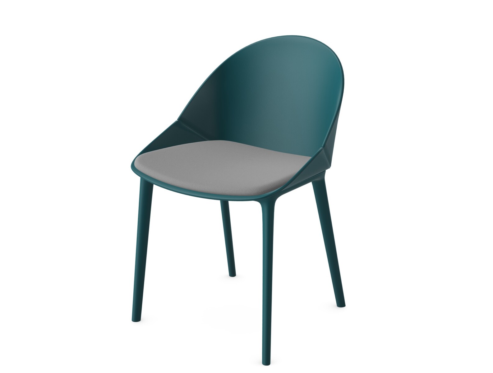 Krzesło może być wykonane w wielu kolorach. Dla wersji ze stelażem 4 nóżki z tworzywa możliwe jest zastosowanie tego samego koloru stelaża i siedziska.