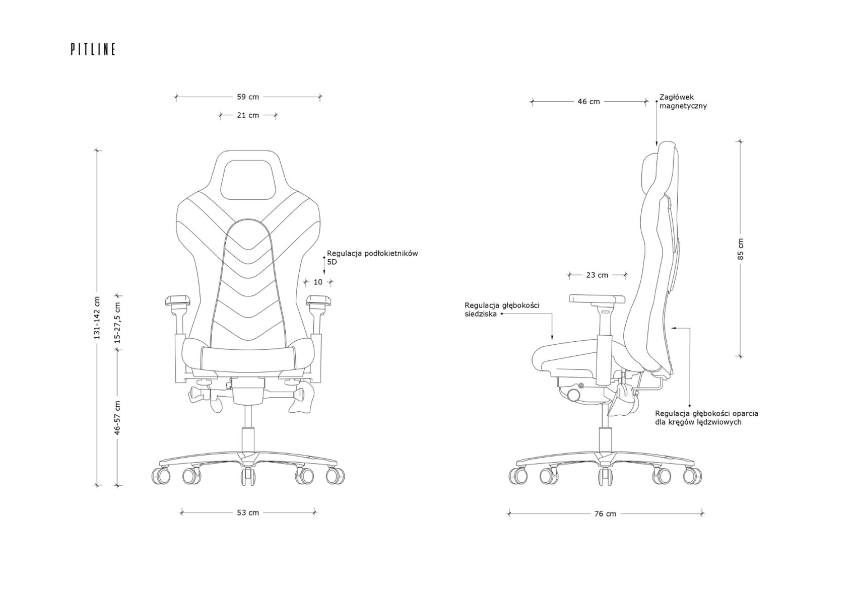 Fotel Pitlane wyposażony jest w magnetyczną regulację wysokości zagłówka, dzięki czemu łatwo dopasować podparcie dla głowy i szyi.