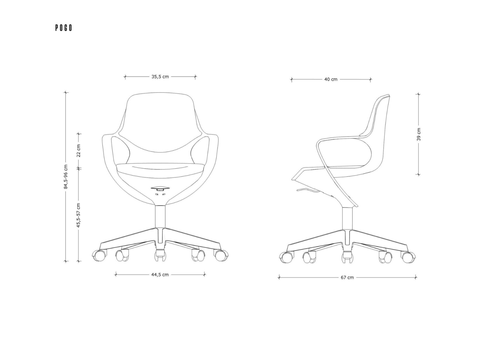 Lekki fotel biurowy POGO łączy estetykę z wygodą użytkowania, oferując rozwiązanie idealne do codziennej pracy przy biurku, spotkań oraz nauki.