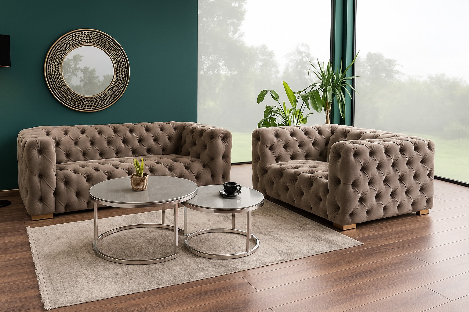 Zestaw 2 ław ceramicznych ze srebrnymi nogami – nowoczesne stoliki kawowe