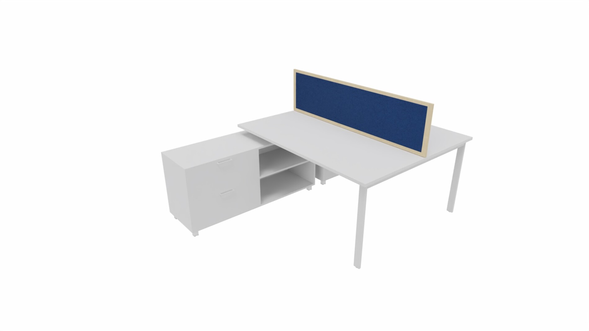Przegroda będzie pasować do zestawionych ze sobą 2 biurek pojedynczych lub do biurka podwójnego typu bench.