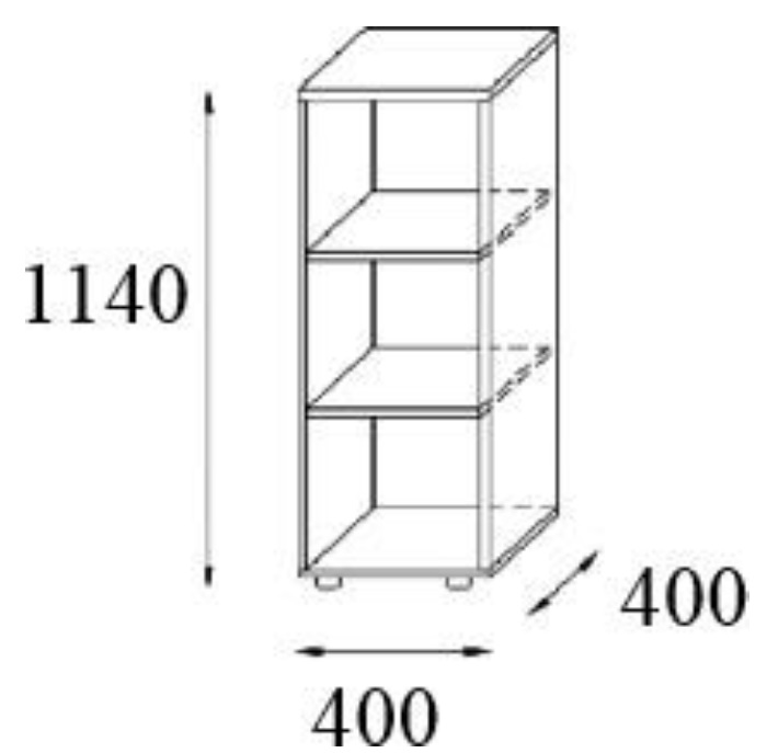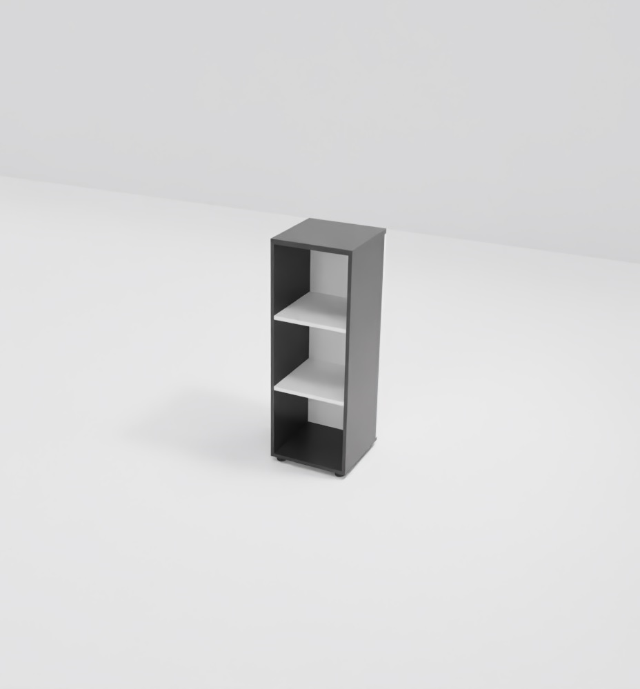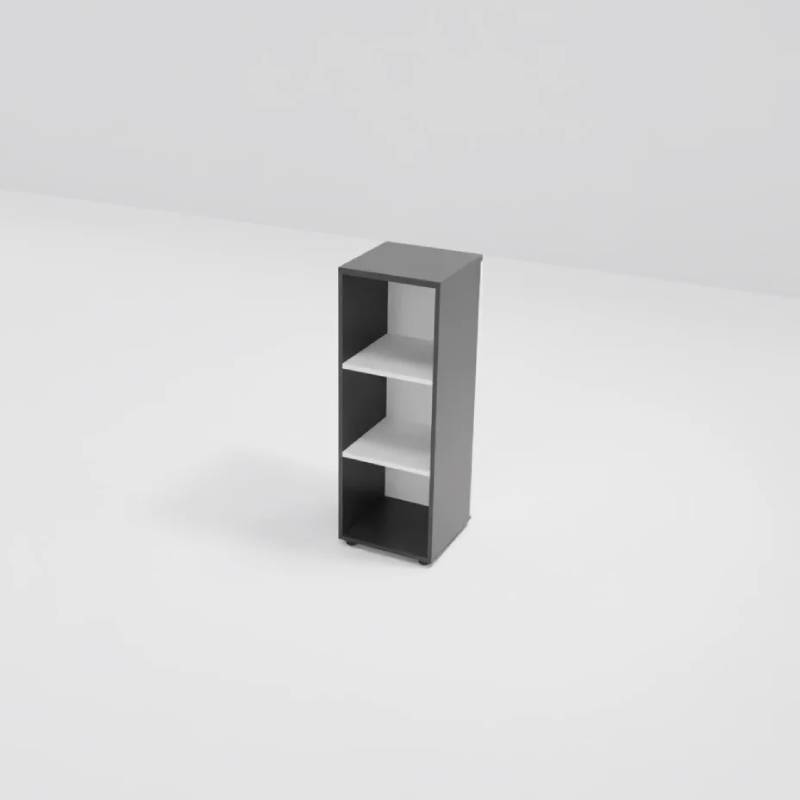 Regał z otwartymi półkami – 3 przestrzenie dostosowane do wysokości segregatorów.
