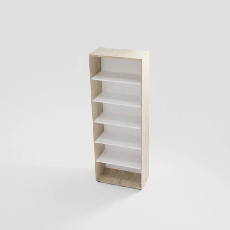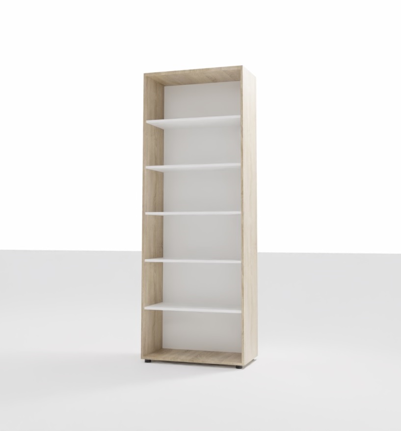 Regał z otwartymi półkami – 6 przestrzeni dostosowanych do wysokości segregatorów.