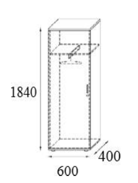Szafa ubraniowa 1 drzwiowa z wysuwanym wieszakiem i półką.
