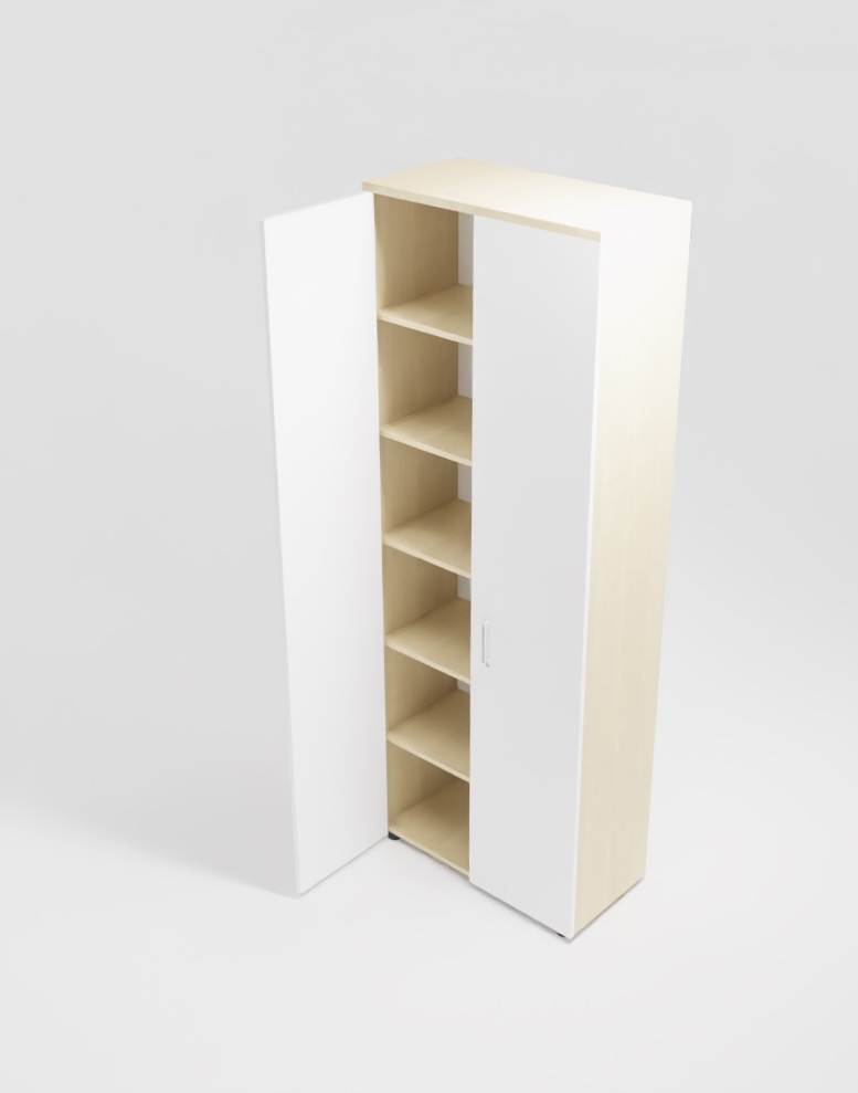 Szafa z półkami zamykana – 6 przestrzeni dostosowanych do wysokości segregatorów.