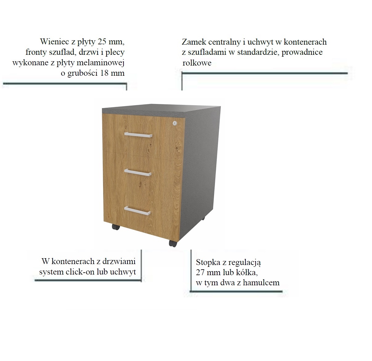Szafka z szufladami i półką – idealnie pasuje do biurek w naszym sklepie.